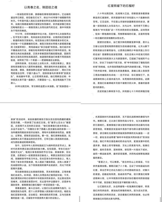 9月26日,我院在厚德楼B513开展“红星闪耀,民族团结”主题征文活动。