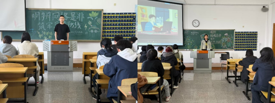 班会以筑牢网络思想防线为核心,讲解网络意识形态安全、网络文明规范、网络安全防护与法治常识等关键内容。各班班长通过分析典型案例的方式,深入剖析错误网络思潮、不良舆论导向的渗透路径与现实危害,明确网络言论的行为边界与法律红线,引导学生在复杂网络环境中坚守立场、理性发声,自觉抵制网络谣言与非理性言论,提升风险识别与自我防护能力。